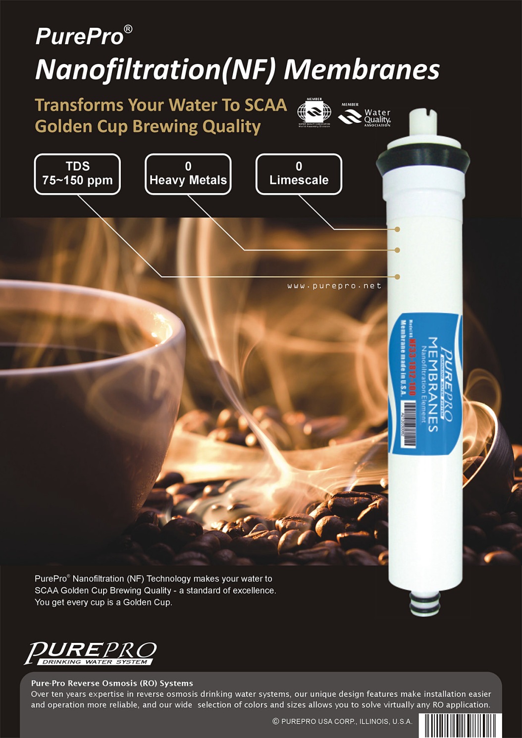 PurePro® 納濾(NF)淨水器-咖啡系列專用礦泉水膜   -美國 PurePro 咖啡機專用礦泉水膜,PurePro NF膜- 250加侖/日製水量,保留約33%礦物質,原價5880,特價$2980元,本週防疫期間優惠活動, 免運費採貨到付款, 只有5天!
