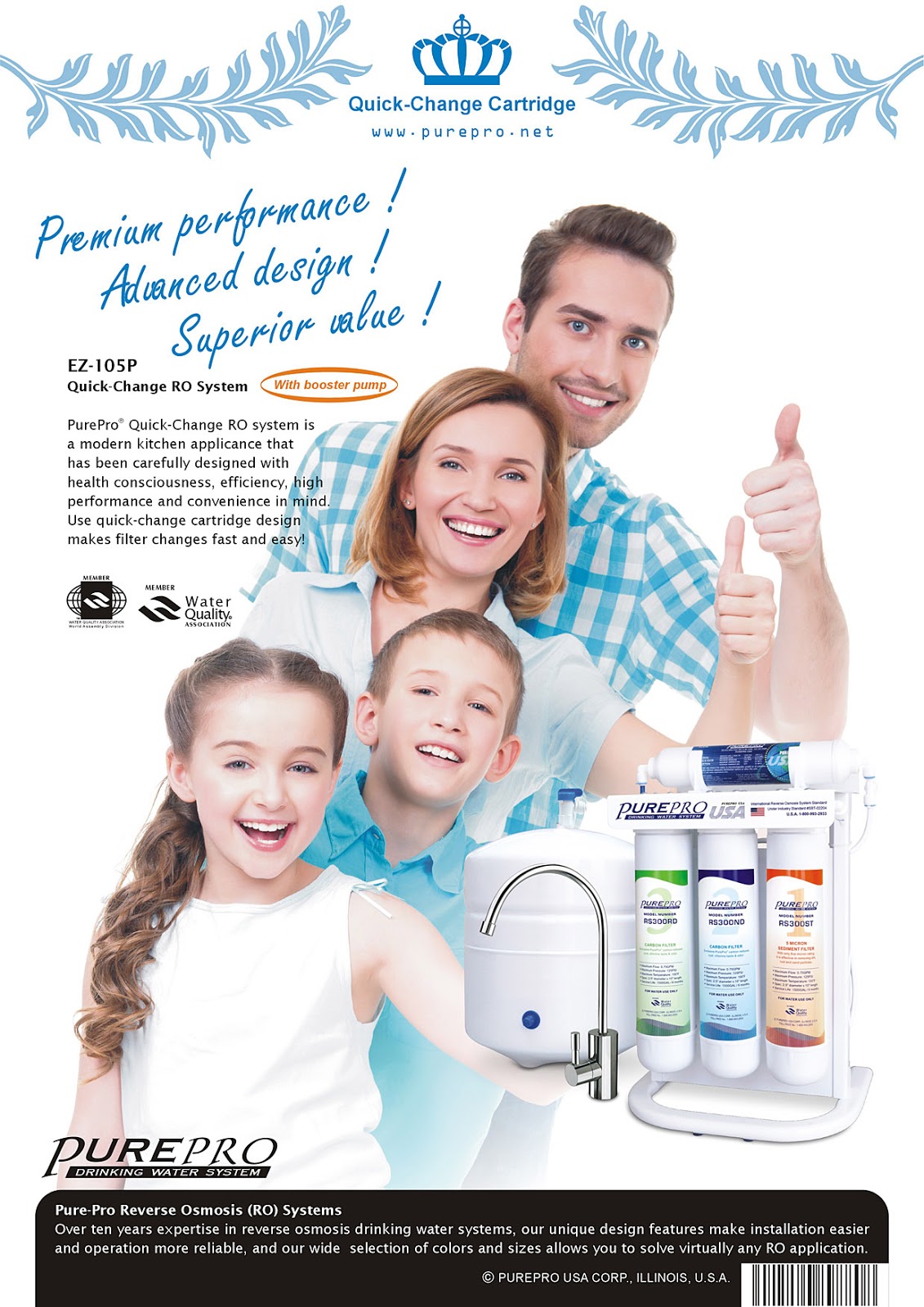 這個革命性的全新 PurePro® 8 道完整過濾系統使用美國 PurePro®礦泉膜 (美國 PurePro®Eco RO膜) 、美國 PurePro®麥飯石礦物濾心和美國 PurePro®Alkaline 鹼性過濾濾心,讓清新、乾淨安全,純淨,健康的水觸手可及。 沒有任何其他市售純水過濾系統可以為您提供像美國 PurePro®EZ105P - MAUV 安全,純淨,健康過濾淨化純水。