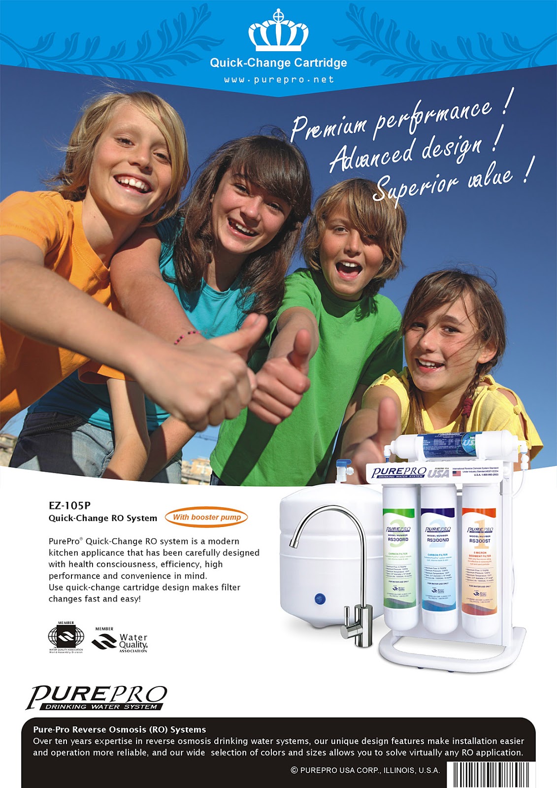 美國PUREPRO是所有專業的淨水專家所公認的最佳品牌,品質好,去除效果佳 ,完全符合飲用水水質檢驗標準,功能與特性優於其他牌,每一滴水都是淨水科技結晶, 是目前採用高科技RO逆滲透淨水技術,效果功能最佳的一種。